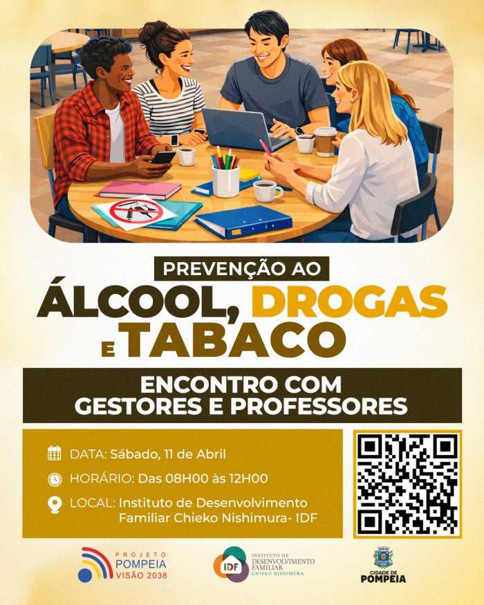A iniciativa é promovida pelo Conselho Municipal de Políticas sobre Drogas (COMPOD), em parceria com o IDF e a Prefeitura de Pompeia, reunindo as instituições de ensino do município em torno da prevenção e da conscientização.